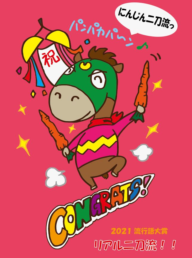 祝! 2021 流行語大賞 ✨ 『にんじん二刀流』🥕🥕(違 個人的には「心を燃やせ」「ウマ娘」「絶対大丈夫」は入ってもおかしくないと思ったんですけどね、、 皆さんの推し言葉はランクインしてましたか?🧐 #イラスト #流行語大賞2021 #リアル二刀流