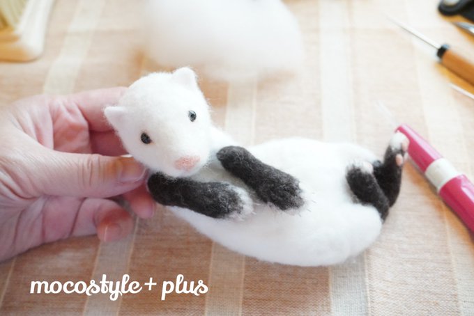 後ろ脚をつけて、胴体のベースも大体出来ました。 もう少し形を確認して色を入れていこうと思います♪ * #羊毛フェルト #羊毛フェルト作品 #羊毛フェルト動物 #羊毛フェルトオーダー #フェレット #オーダーメイド #うちの子オーダー #リアル羊毛フェルト #ハンドメイド #モコスタイルプラス