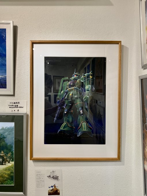 今日は楽しかったなぁ… 子供のころ憧れたリアルタイプザクのプラモデルの箱絵の原画が生で見られるとは… しかも40年前のものとは思えないクオリティ&綺麗さ😳 ぜひたくさんのガンプラ好きに見てほしい‼️ #リカビックアート展 #奥野ビル #銀座中央ギャラリー #ガンプラ #ザク #リアルタイプザク