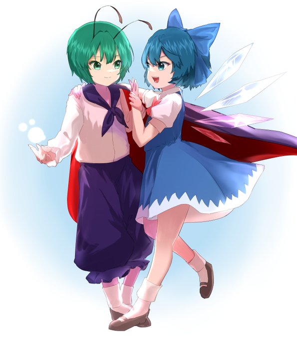 とーほー いっぱーい あるーね #絵描きさんと繋がりたい #絵描きさんフォロバ100 #絵柄が好みって人にフォローされたい #イラスト #イラスト好きな人と繋がりたい #東方Project #東方イラスト #藤原妹紅 #因幡てゐ #霊烏路空 #リグル・ナイトバグ