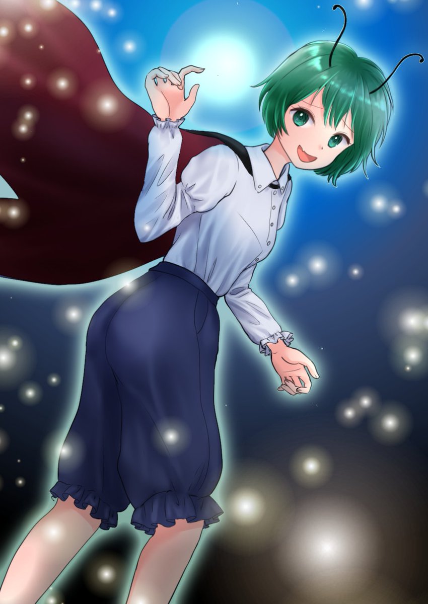 前に私の絵柄に合うキャラをフォロワーさんが教えてくれるってタグで、リグルが合うと思うって教えてくれたから描いてみたよ( ˶ `ω´ ˶ )どうかな 蛍の光上手くかけたと思う(๑•̀ㅂ•́)و✧ #東方Project #リグル・ナイトバグ