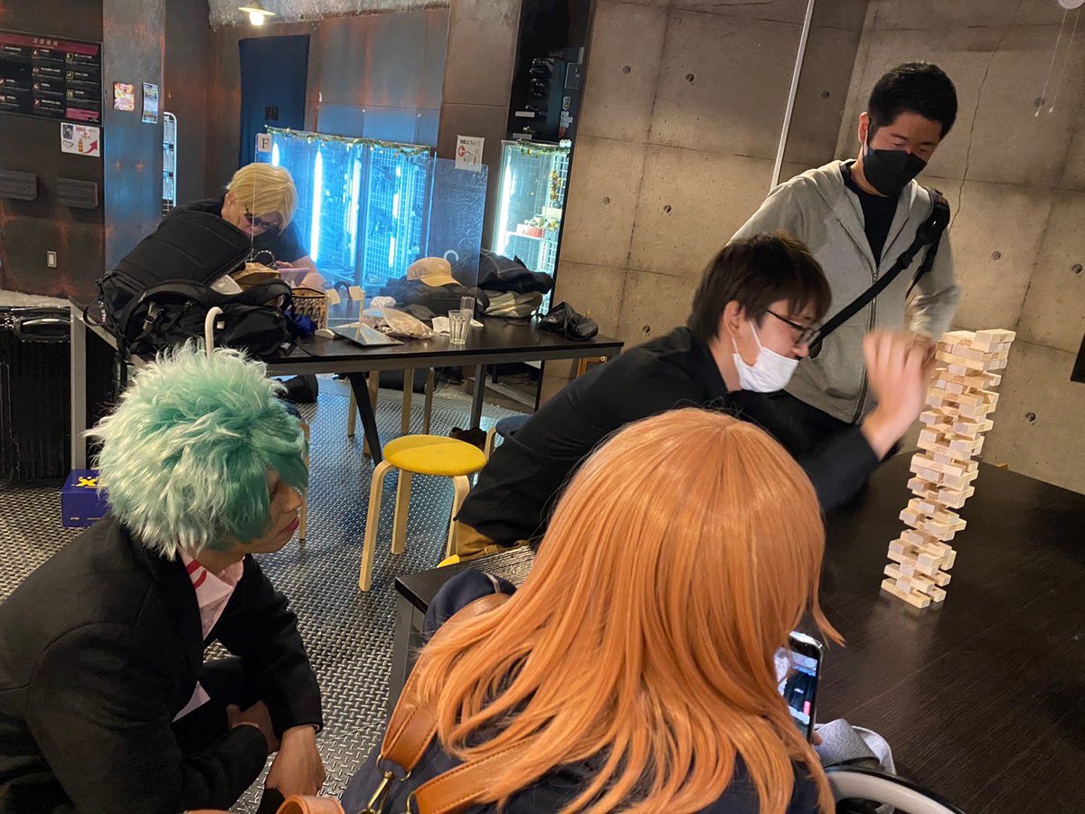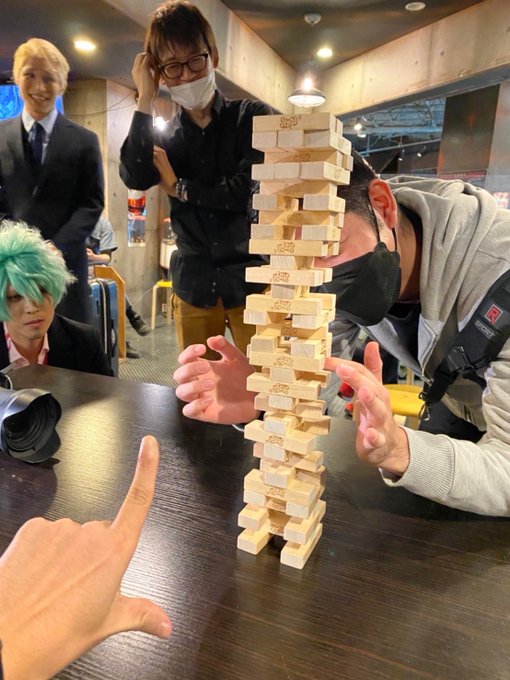 ジェンガ始まってからスケジュールが30分押してて早く誰か倒してくれねーかなって思いながら見てる俺…… みなバランスとりすぎなんよwwww 尚カメラマン全4人中3人参加😇 #リコリコ大型併せ1126