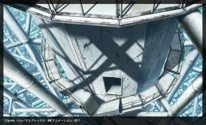 【リコリス リコイル】本編背景より 旧電波塔の中腹にある整備用の足場です。 #リコリス・リコイル #LycorisRecoil #リコリス #草薙 #kusanagi #アニメ #anime #art #backgroundart #イラスト