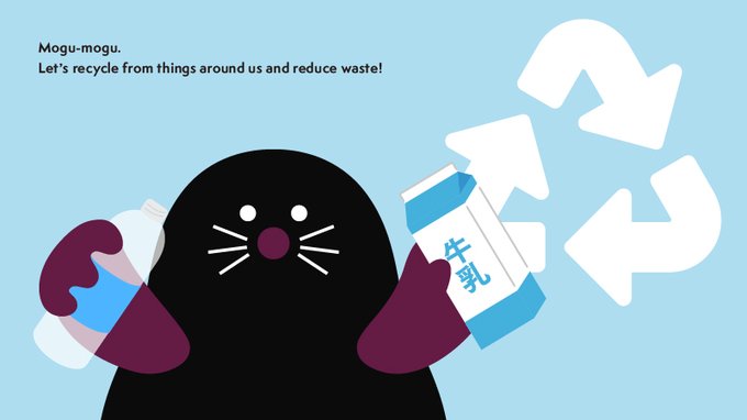 モグモグ〜!身近なものからリサイクルしてゴミを減らそう! #リサイクルの日 #モグハル #Moguharu #もぐら #キャラクター #character #イラスト好きな人と繋がりたい #イラスト #illustration #デザイン #mascots