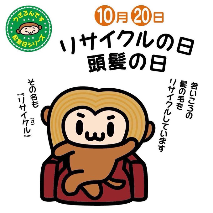10月20日はリサイクルの日&頭髪の日。とうはつ(1020)の語呂合わせと、リサイクルを意味するひと回り(10)ふた回り(20)の語呂合わせなんですよ。将来は髪がうすくなりそう…というひとは、今の髪を保管していつかリサイクルしましょう〜 #リサイクルの日 #頭髪の日 #イラスト好きな人と繋がりたい