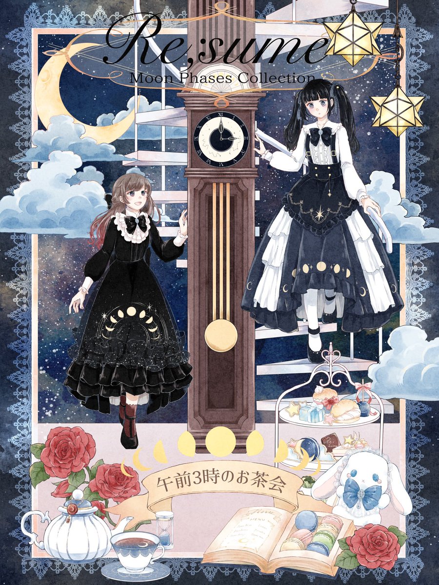 真夜中から明け方へ、各色のイメージイラストを描かせていただきました🌙.*·̩͙ 「午前3時のお茶会」の素敵な物語もぜひギャラリーページにてご覧下さいませ☕️ 🌒🌓🌔🌕🌖🌗🌘 resume-reunite.com/gallery #リジューム