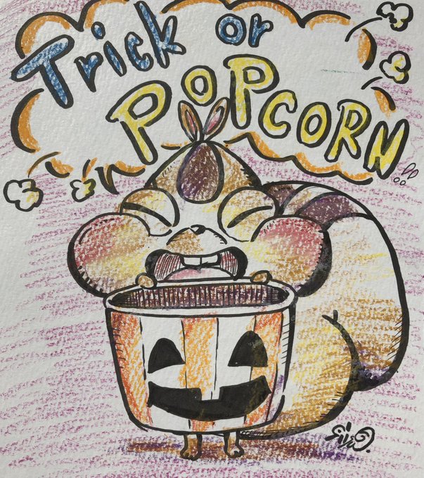 【ハロウィンイラスト🎃】 『Trick or POPCORN 🍿!!』 #ハロウィンイラスト展示会2021 #halloween2021 #ハロウィンイラスト #TrickOrTreat #popcorn #リスイラスト #ハロウィン2021イラスト・創作祭り #ハロウィン2021