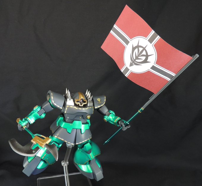 資料によると、MS-09R ドズル・ザビ専用リック・ドムは、『宇宙世紀0079年末には観兵式に参加している。』とのこと。そこからイメージを膨らませて、МS用のジオン公国章の旗を持たせてみました。 #ガンプラはどんな自由な発想で作ってもいいんだ #ガンプラ好きな人と繋がりたい #リックドム
