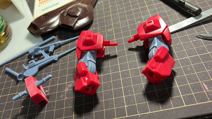 脚部背面と肩部の目立つ合わせ目のみ接着剤でくっつけたので、完全に乾燥終わったらヤスって消そうと思う。 転写式デカール貼って、光沢トップコート吹いたら完成かな。 #ガンプラ #リックディアス #リック・ディアス #ガンプラ好きと繋がりたい #ガンプラの画像を貼るとRTされると聞いて