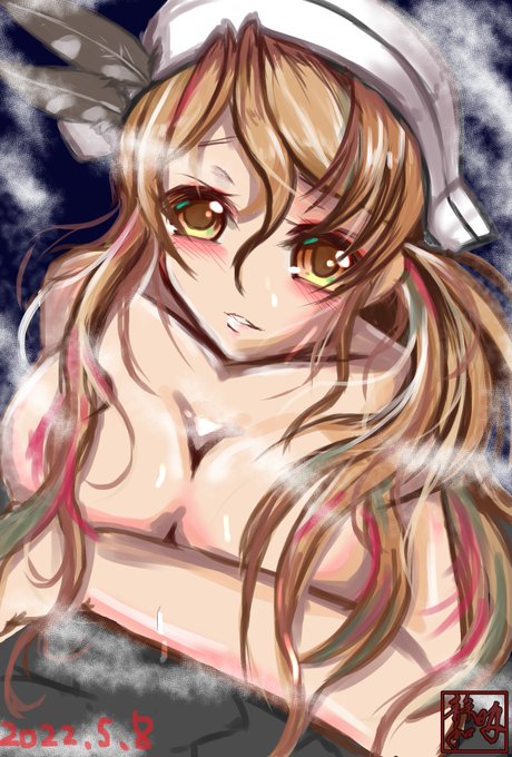 リットリオさん。「てっきり水着かと・・・え?こっちの方がいかがわしい?提督、もう怒りますよ?」 確かに水着も最高なんだけど普段からヤバイんだよデス。 #艦これ #リットリオ #艦これ版深夜の真剣お絵描き60分一本勝負 #艦これ版真剣お絵描き60分一本勝負_20220208