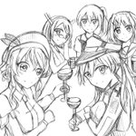 今日のお題は5人とも描きました。 プリンツさん、リットリオさん進水日おめでとう\(^o^)/ 皆でお酒で乾杯です! #艦これ版深夜の真剣お絵描き60分一本勝負 #艦これ版真剣お絵描き60分一本勝負_20220822 #艦これ #霧島 #プリンツ・オイゲン #古鷹 #リットリオ #加賀