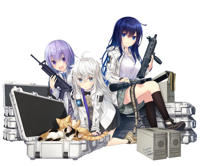 #リトルアーモリー 新製品のパッケージアート担当しました!輸送に便利なケース類一式です。 猫に翻弄される武装JKとか静水さんを描きたかったんじゃあ・・! そこここに仕込んだネタを楽しんでください! ※猫は製品に含まれません。 twitter.com/LittleArmory/s…