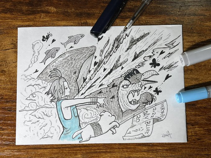 いつかの夢が私の心臓 何度でも何度でも言うわ 私は最強(#ado #ウタ) #inktober2022 #inktober2022day20 #イラスト #ペン画 #リトルハナ 短い人生だしハッタリかましてるくらいがちょうどいいのかも おやすみー