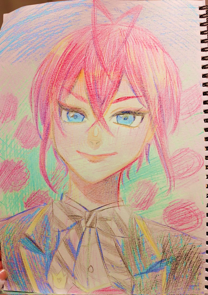 去年、リドルくんの誕生日🎂に描いた イラスト(模写) (アナログ&色鉛筆) お絵描き楽しいので、たまにやっています♡ #ツイステ #ツイステッドワンダーランド #ツイステファンアート #twist #イラスト #アナログ絵 #模写 #色鉛筆 #お絵描き #リドルローズハート #ツイステ好きな人と繋がりたい