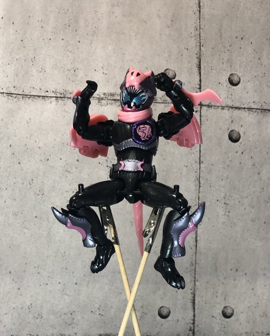 #夜のフィギュア撮影会 お題「怪物」 ピンときたのがバイスだったので、バイス1人を撮影しました。 リミックスフィギュアならではの保持方法で宙に浮かせました。 #リバイスリミックスフィギュア #仮面ライダーリバイス