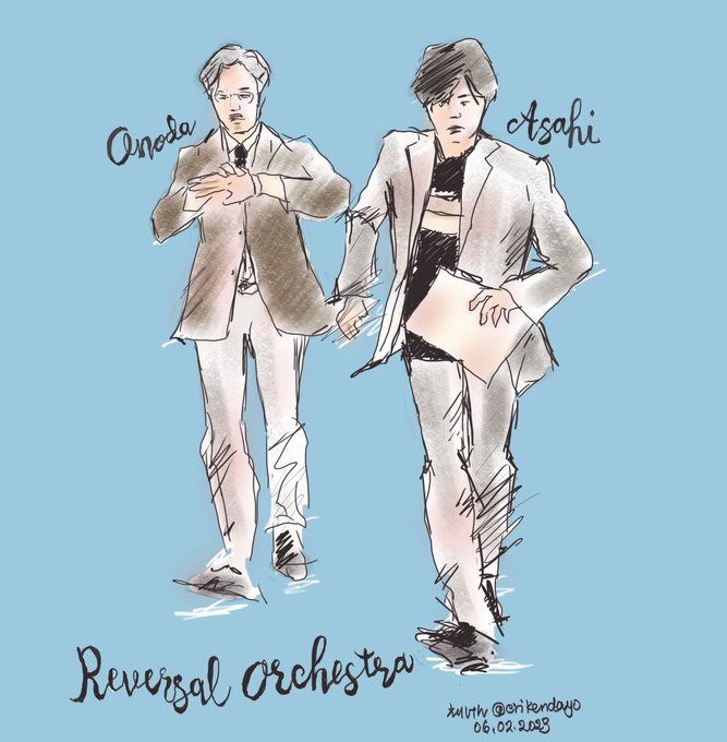 土井さんに泣かされたわ〜🥲めっちゃ良いパパやし!&小野田さん、細かいとこ(RTキャンペーン分かんなかったり、メモ破ったり)色々素敵でした⚯✧ そんな(?)リバオケ第9話🎻🎺 #リバーサルオーケストラ #リバオケファンアート #田中圭 様 #門脇麦 さん #前野朋哉 さん #岡部たかし さん #イラスト