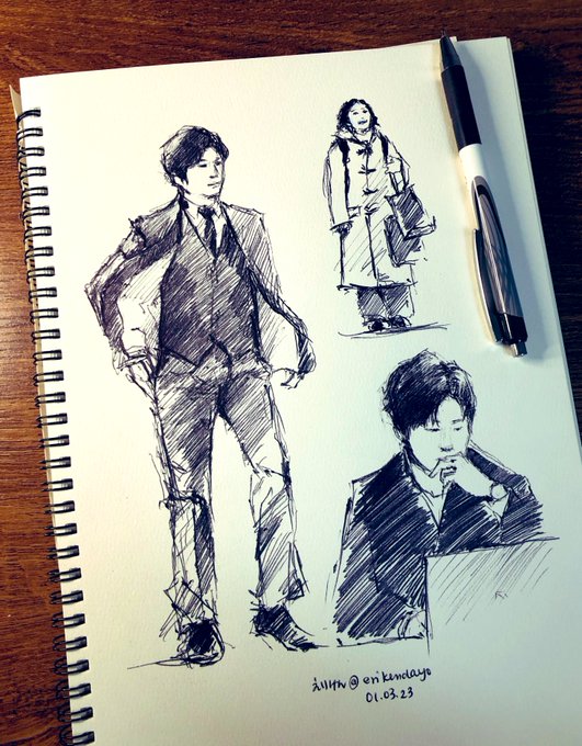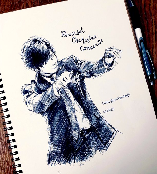 #リバオケファンアート #リバーサルオーケストラ #ボールペンスケッチ 思わず悲鳴が出てしまった朝陽さまの3ピーススーツ姿。風で上着がひるがえるのは反則です。反則です!!🙈(2回言っちゃう)あと頬杖も私たちを殺す気ですか?最高です(ʚ̴̶̷́ .̠ ʚ̴̶̷̥̀ ू) 💘💘💘 twitter.com/erikendayo/sta…