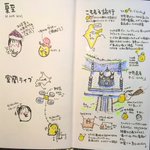 見開きアーカイブ 11月前半16枠 前半はライブもなく ほのぼのする話題が 多かったような🤔 そして12冊目に登場〜 🍑使用画材 #トラベラーズノート #リフィル003 #呉竹筆ペン #コピックマルチライナー #ファーバーカステル水彩色鉛筆 #三菱鉛筆B #イラスト #よかったらお気に入り教えて下さい