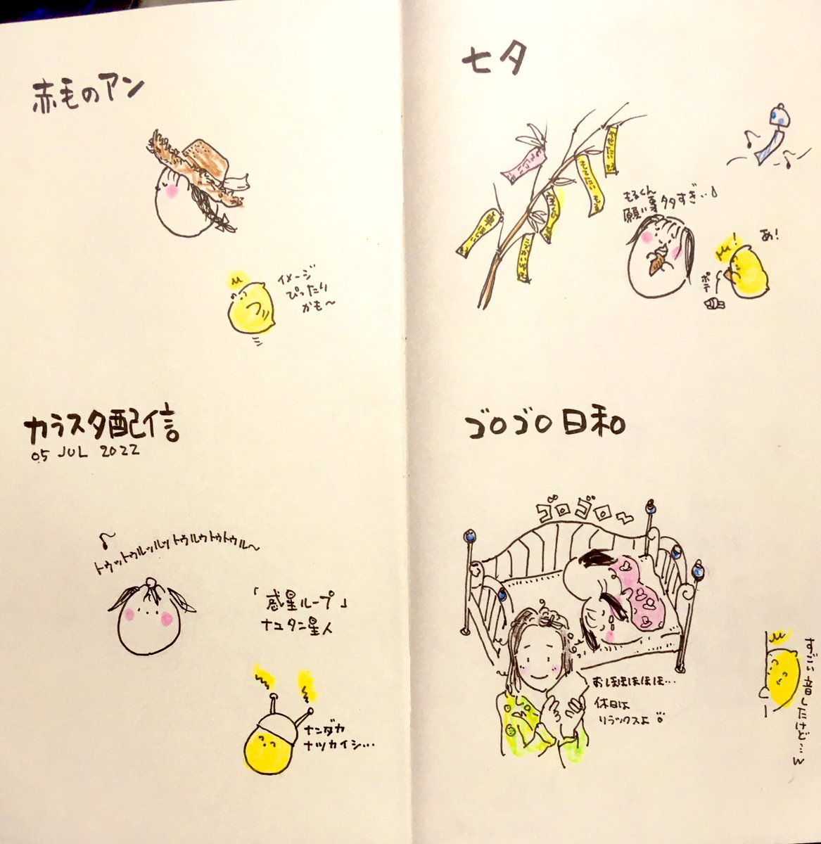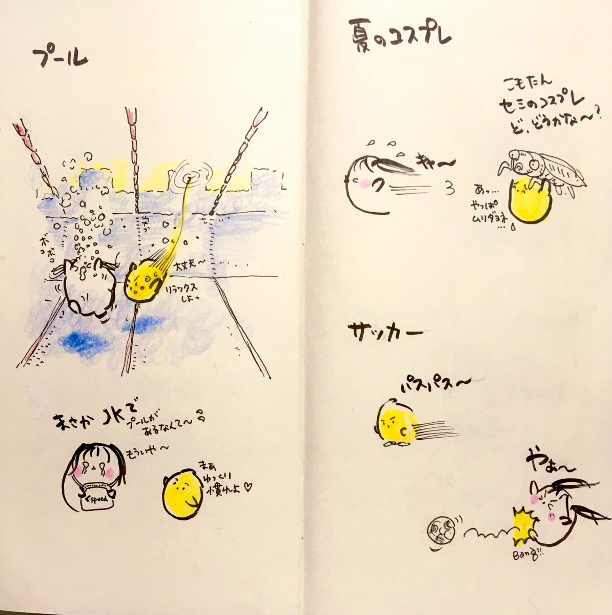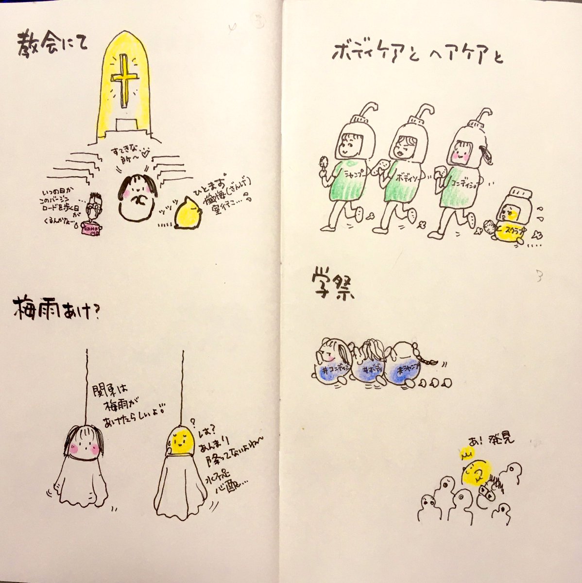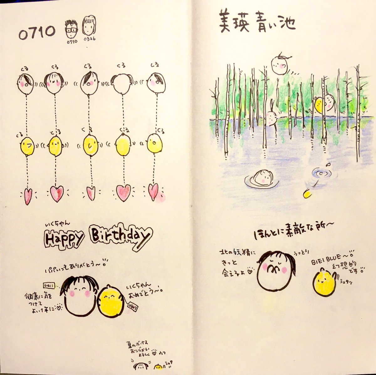 見開きアーカイブ6月 7月より こももる日和は 早朝更新に変更いたします🍑🐤 6月前半からどうぞ #よかったらお気に入り教えて下さい 🍑使用画材 #トラベラーズノート #リフィル003 #呉竹筆ペン #コピックマルチライナー #ファーバーカステル水彩色鉛筆 #三菱鉛筆B #イラスト