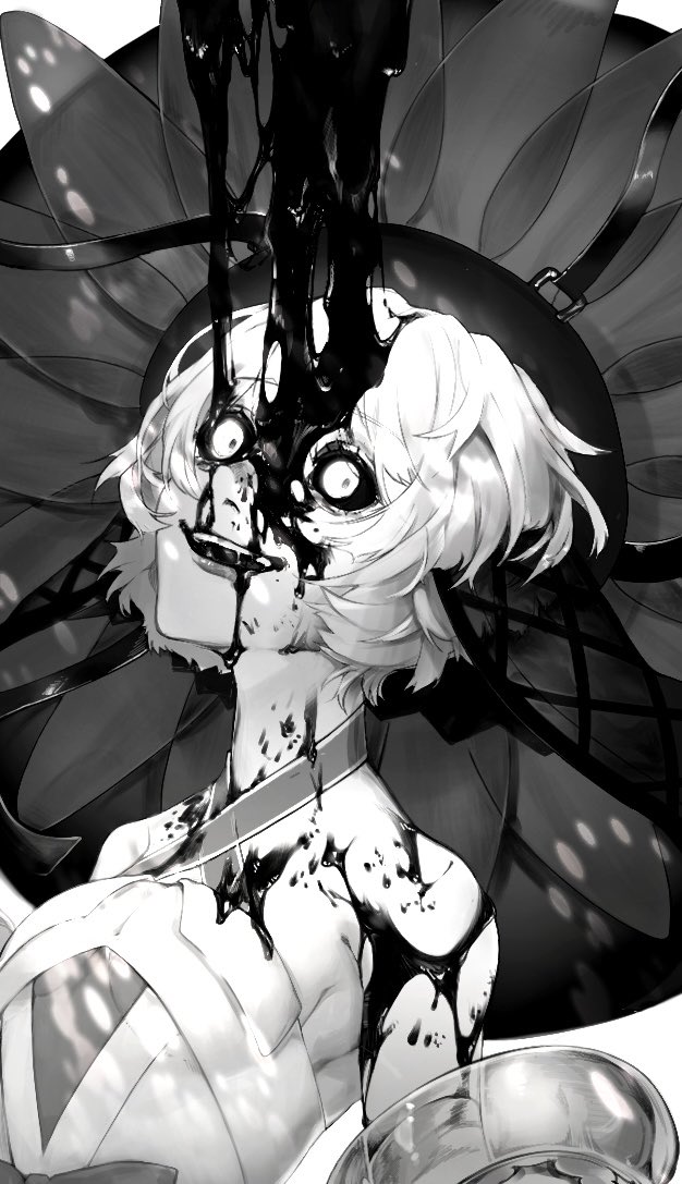 #リプきたキャラの顔を血塗れにする めちゃくちゃ時間経ったけどまだクソほど描けてないの…今でけてる分だけ載せるね!めちゃくちゃ許して!!(線画なのも許せ!!) とりあえず、ぐだ子、メリュジーヌ、グレイ、ゴルゴーンです!!