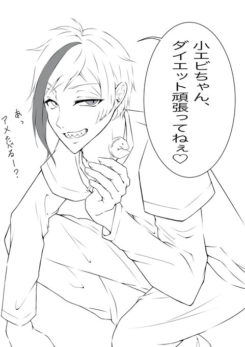 #リプきたセリフで一コマ描く 2枚目完成ですー!(ㅅ´꒳` ) 🦈「🦐ちゃん、ダイエット頑張ってねぇ♡」 です✨️ 運動着描いてみたくて今回は運動着にしてみました! ダイエットを頑張る🦐ちゃんに甘いものを食べさせようとするS🦈をイメージ🥹 参加ありがとうございますー(*•̀ㅂ•́)و✧