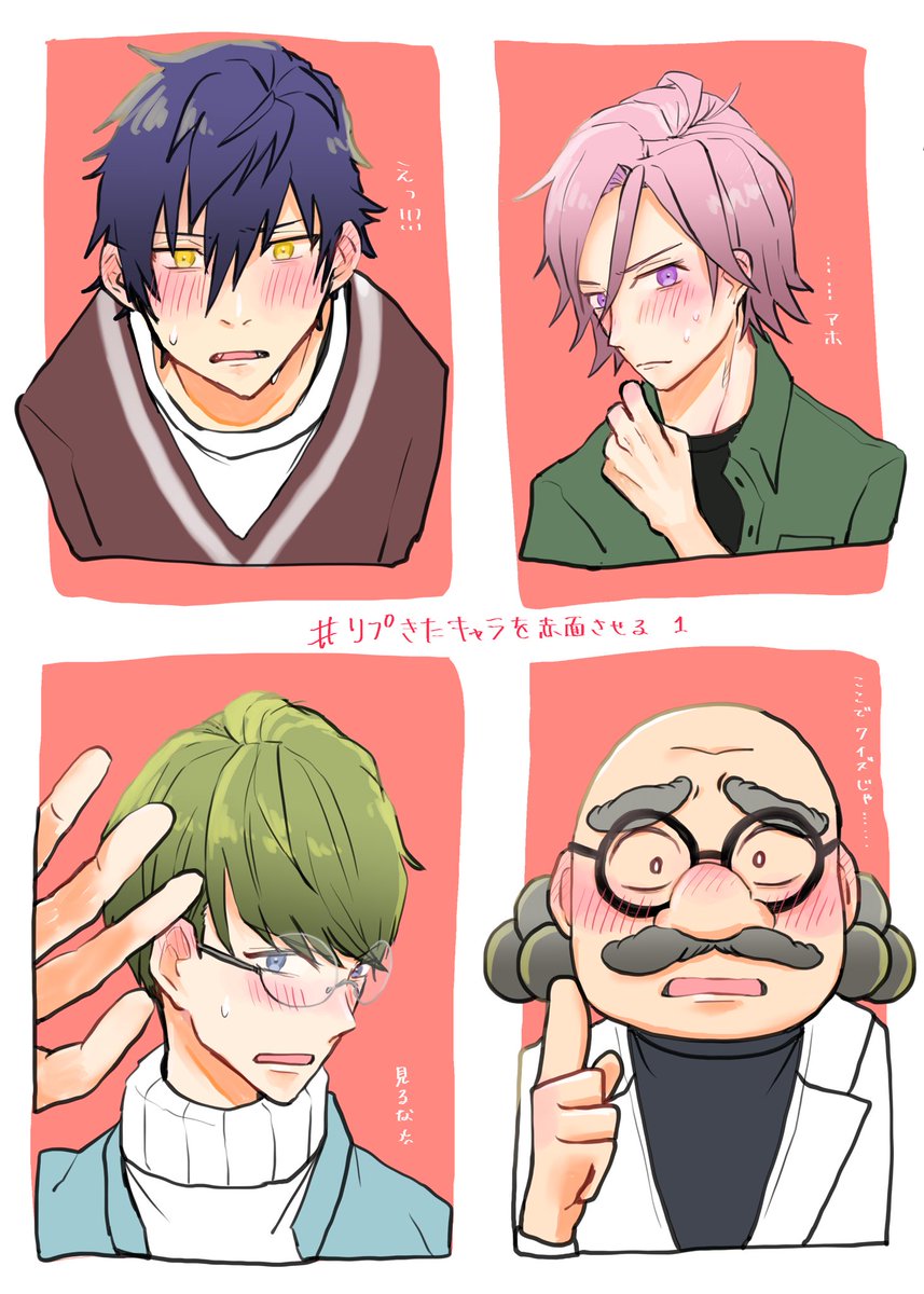 #リプ来たキャラを赤面させる 自キャラ最後は葉介にしようと決めてました🙌 リクは全面赤面ということで! 付き合い始め当初から、洋二にしてほしいなあと言われ続けているものの、どうしてもOKが出せないことが彼にはあるので、その辺りをおねだりされると毎度ぷしゅぷしゅ沸騰してると思います😂
