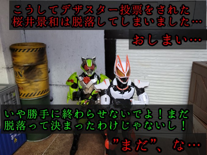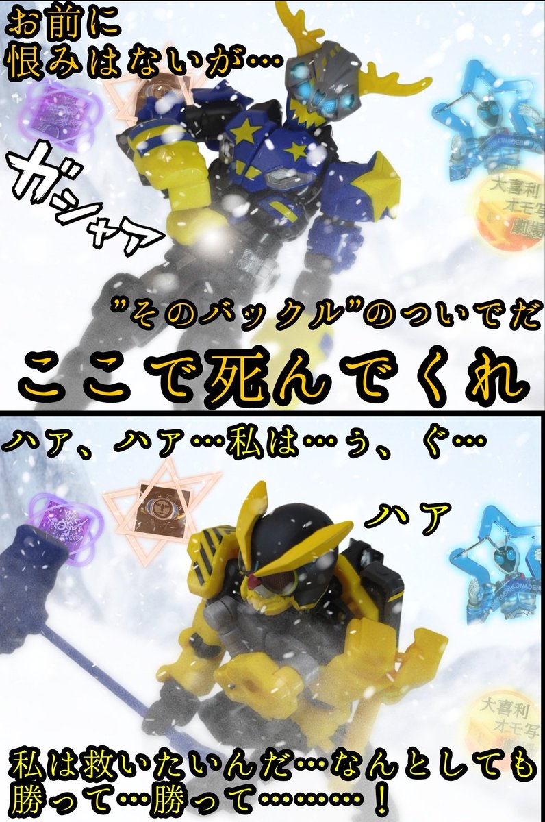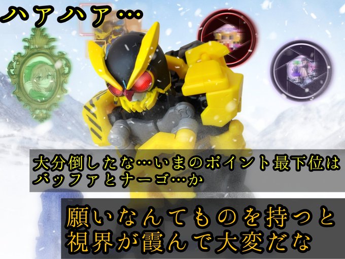 『願いは願い』 一週間に及ぶ治療を終え、戒幻探.CH魑魅魍魎が跋扈する4コマ世界に戻って参りました…! ついに始まってしまったデザイアグランプリ… #オモ写 #リボルブチェンジフィギュア #仮面ライダーギーツ