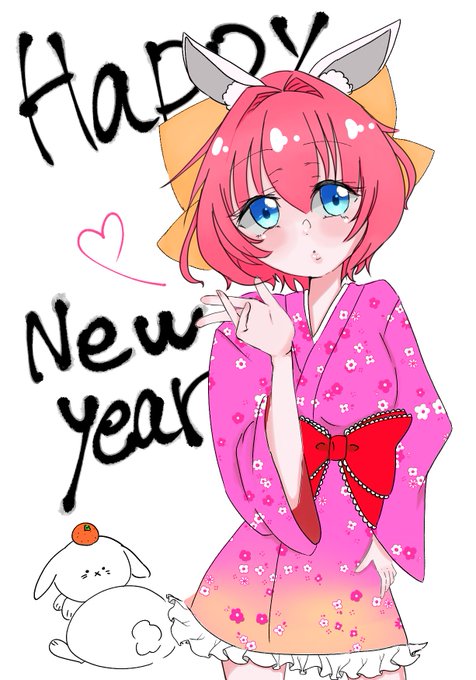 #リメンバーズ冬の創作祭り #リステ #リステージ 年賀状🍊描かせていただきました!!来年もリステージに幸あれ💘💘🥺 うさぎかえちゃん~🎀❤️ この衣装お団子食べてるかえちゃんの衣装から摂りました🫣🎀❤️❤️