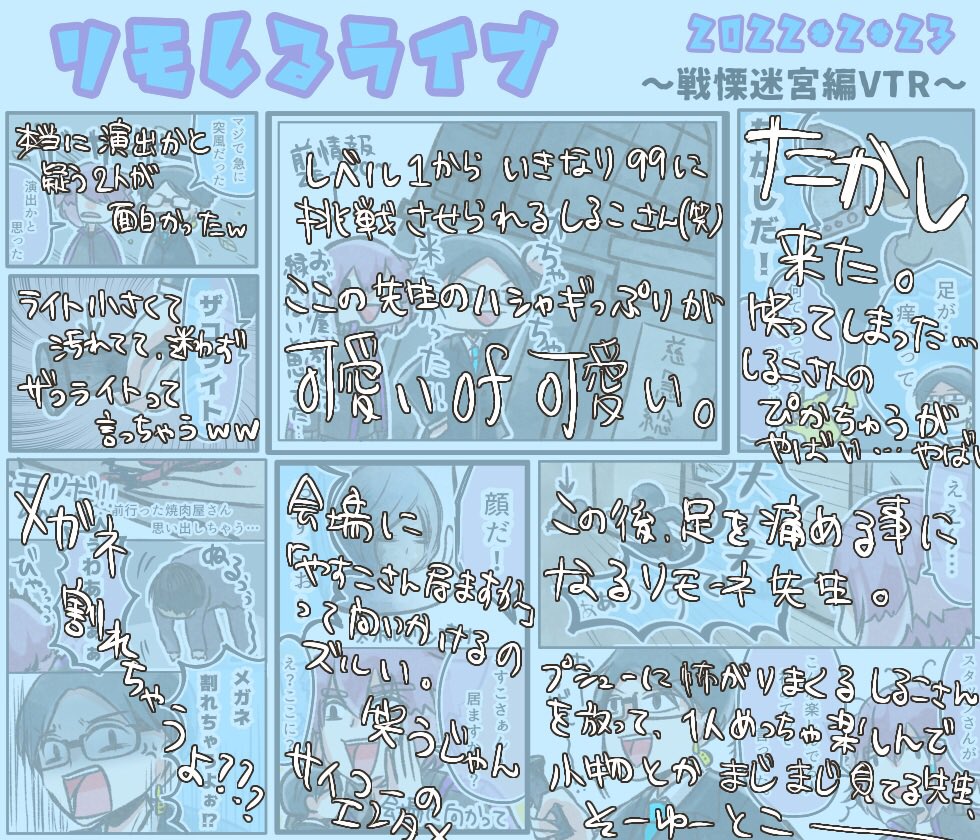 リモしるライブ楽しかったですね! 思い出に残る素敵な時間をありがとうございました!🎉🎉🎉 記憶の限り振り返ったので所々曖昧ですがご容赦ください〜😭 #リモしるライブ #bintrollFA #リモー絵先生