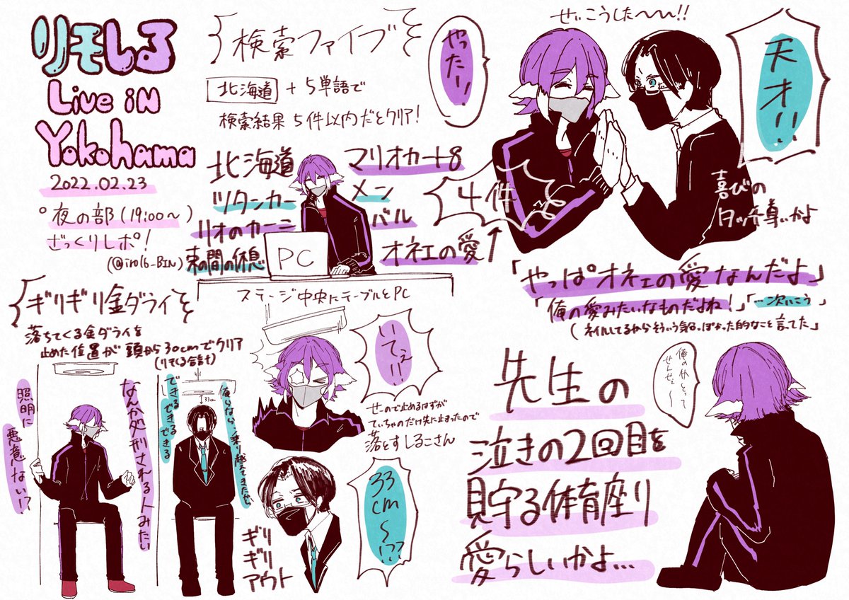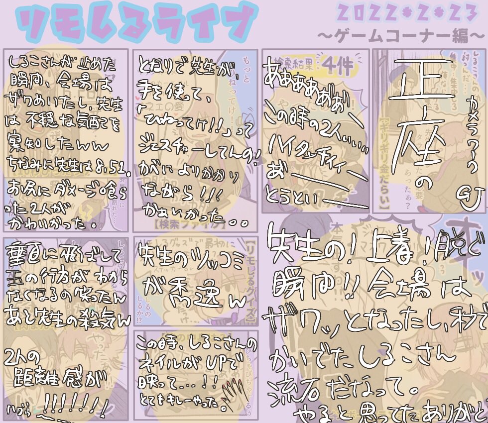 リモしるライブレポ(お昼の部) 🍋2022.2.23🐶 夢のように幸せな時間をありがとうございました! ⚠︎記憶を元に描いたので細部が異なる可能性があります ⚠︎主観を含みます #リモしるライブ #bintrollFA #リモー絵先生