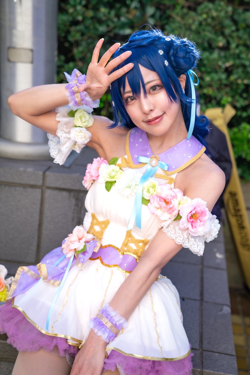 【コスプレ】💐💫 こんにち海未ちゃん🏹 今日もいい天気ですね☺️💙 午後もお写真頑張りましょう✨ photo:@stripepan2 #cosplay #コスプレ #池袋ハロウィン2021 #池ハロ #池ハロ2021 #リュカを褒めて伸ばし隊 .