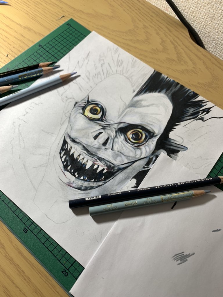 @Meanano_illust リクエストのリュークです。今回はちゃんと描きました😸色ムラ多くてすみません😢⤵️⤵️ #デスノート #リューク #ペン画 #難しい #色ムラ #絵描きさんと繋がたい #絵描きさんと仲良くなりたい