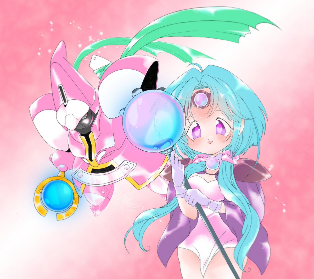 #リューナイト #覇王大系リューナイト 春風 けっと @europa_i さんにヒント頂きまして作った半オリキャラのキリエちゃん。 以前来栖川芹香さんのフィギュアを元ネタにパッフィーを描いたので妹の綾香さんのフィギュアを元ネタに1枚。 元ネタと資料を返信に!
