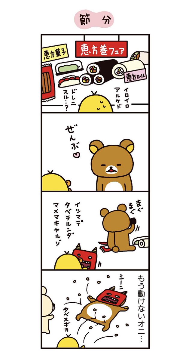 4クマ pachikuri.jp/4kuma/ 何巻からよんでも大丈夫!単行本もどうぞヨロシクです。shufu.co.jp/bookmook/detai… #リラックマ #節分 #節分の日