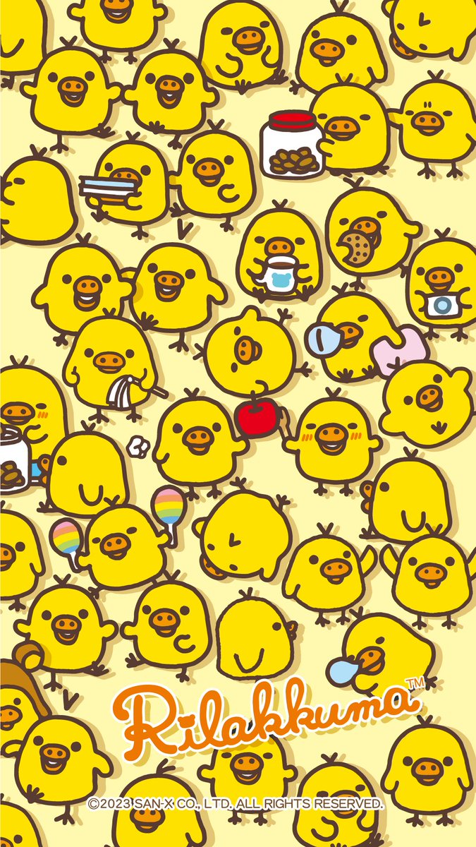 #リラックマ20周年歴代シリーズ総選挙 \23年秋、上位8シリーズで決選投票予定/ 決選投票への進出を記念して、今日は #キイロイトリいっぱい テーマのスマホ壁紙をプレゼント✨ 保存して使ってくださいね🐻💛 新しい企画も準備中!お楽しみに~♪
