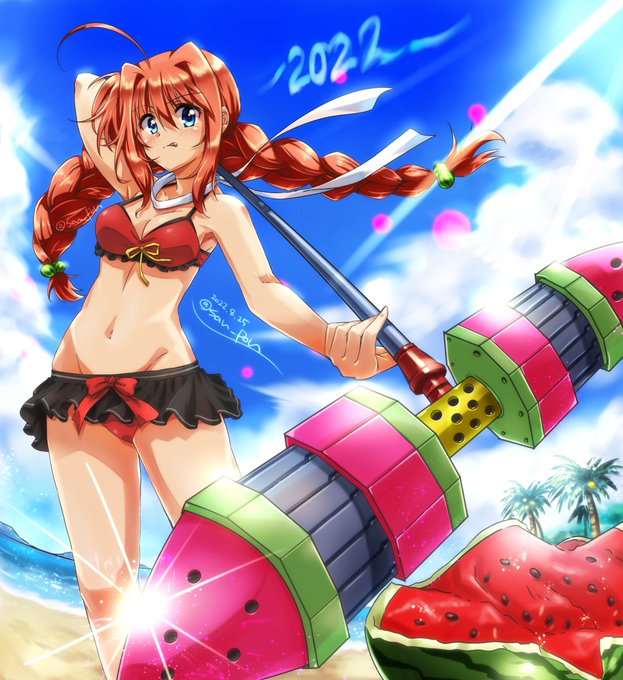 ヴィータ、《グラーフアイゼン》ツェアシュラーレンフォルム(スイカバーVer 装備なぅ(*´∀`)b ツェアシュラーレン…そんな呼び名だったんだ、今調べて初めて知りました←ぇ(ギガントの尖ってるやつ、ってずっと呼んでたwww #リリカルスイカバー2022