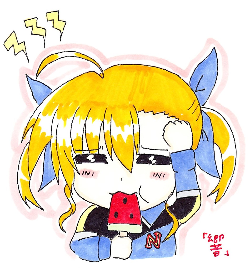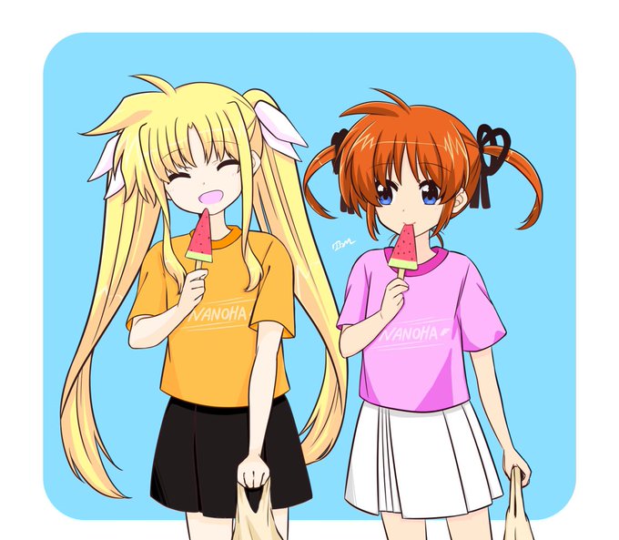 今年も滑り込みで参加です*\(^o^)/**\(^o^)/*この企画の参加作品拝見するとスイカバー食べたくなりますね😋💕💕 ※フェイトちゃんのTシャツの文字はミスではありません #リリカルスイカバー2022