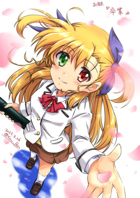 🌸Glory Graduation🌸 「微笑みでこれからきっと」 卒業季節なのでDetで描写された私立聖祥小学校の卒業式のフェイトを描きました。日常のツインテールを卒業したロングのフェイトです。そのうち新プロを待つ人生を卒業できる日が来るはず!中学生編はよ! #リリパナイワンドロ #リリカルなのは #nanoha
