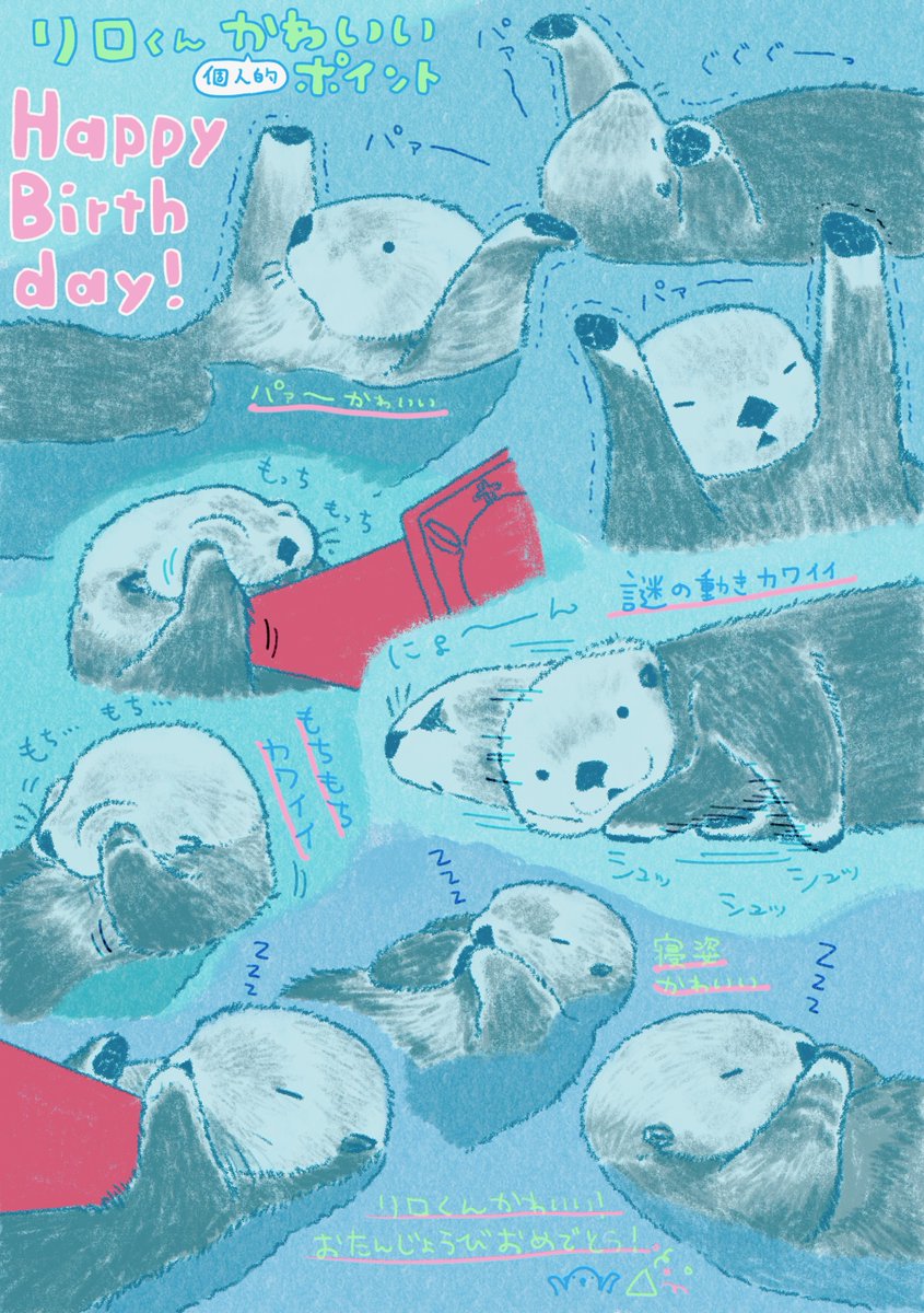 リロくんお誕生日おめでとう!!🎉 まゆっこさん(@mayu_kko )の動画の一場面をお借りしてかわいいポイントを描きました🤍 元気で長生きしてねーっ🥳 #リロくん #ラッコ #マリンワールド海の中道