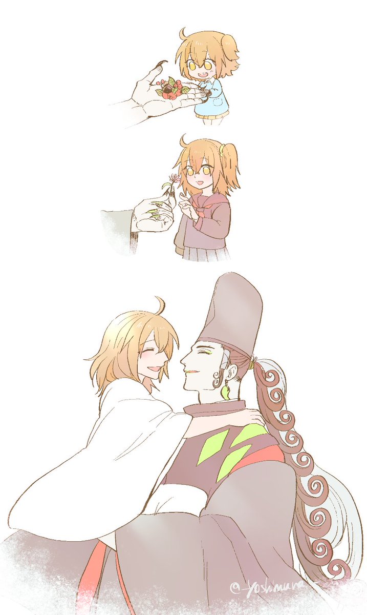#リンぐだ子週ドロライ お題「警告」よろしくお願いします。 悲しい事があると、独り立入禁止のお寺で泣いてるロリぐだ。小さい子が泣いてるなぁ、と、なでなでしてくれる誰か。 「ここに居ていいのは明るいときだけ。夕暮れ以降に来てはなりませんぞ」