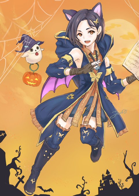 #テイルズオブアライズ #リンウェル #ハロウィンイラスト展示会2021 カラバリ&アタッチメントのリンウェルがあまりにもハロウィンだったのでw(今回ポーズはゲーム画面を参考に描きました〜)