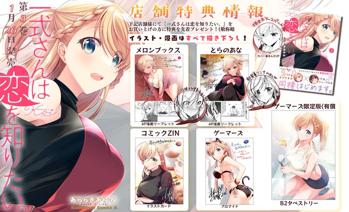 一式さんは恋を知りたい。3巻1/26(水)発売!!🎉 🍳特典解禁!🍳全て描き下ろしです!🎊 🍈 melonbooks.co.jp/detail/detail.… 🐯ecs.toranoana.jp/tora/ec/item/2… 🎮 gamers.co.jp/pd/10585343/ 🎮限定版 gamers.co.jp/pn/%E3%80%90%E… ZIN shop.comiczin.jp/products/detai… Ama amazon.co.jp/%E4%B8%80%E5%B… #一式さん #リンナ警部