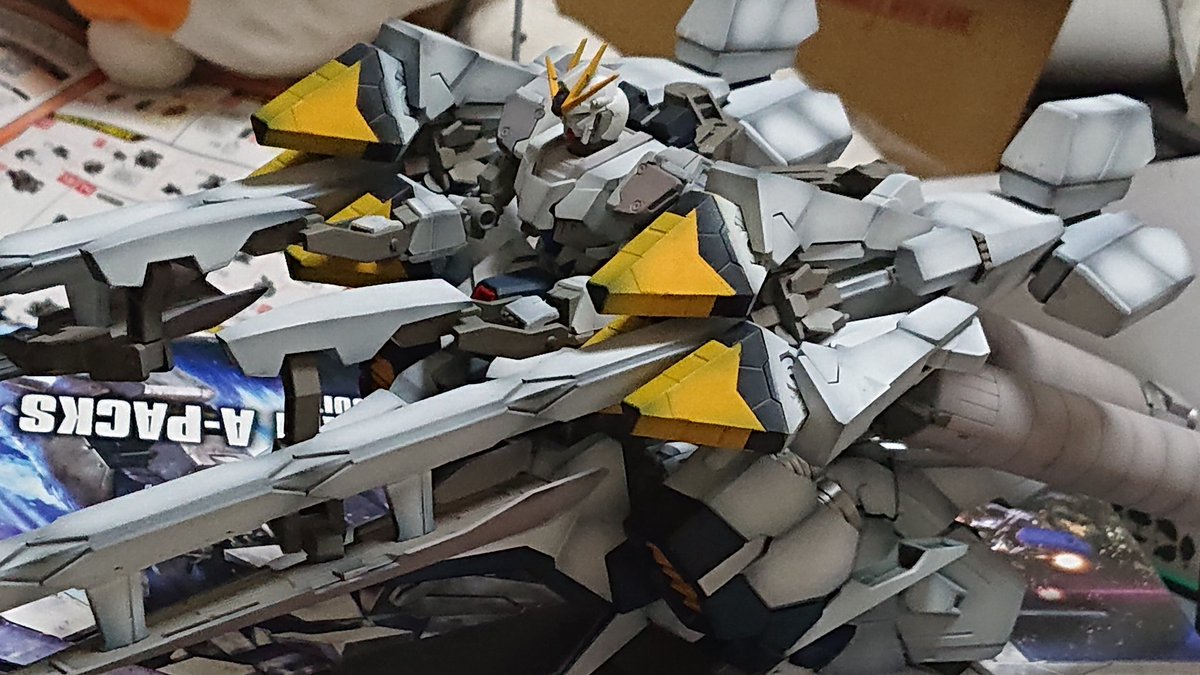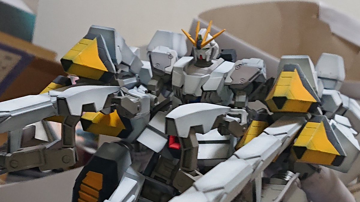 できた! ガンプラで初めて水転写デカール使ったけど難しい! 一部デカール使えなくなって欠けてる部分あります #ガンプラ #ガンプラ好きと繋がりたい #ガンプラの画像貼るとRTされると聞いて #リンプラに見せてね