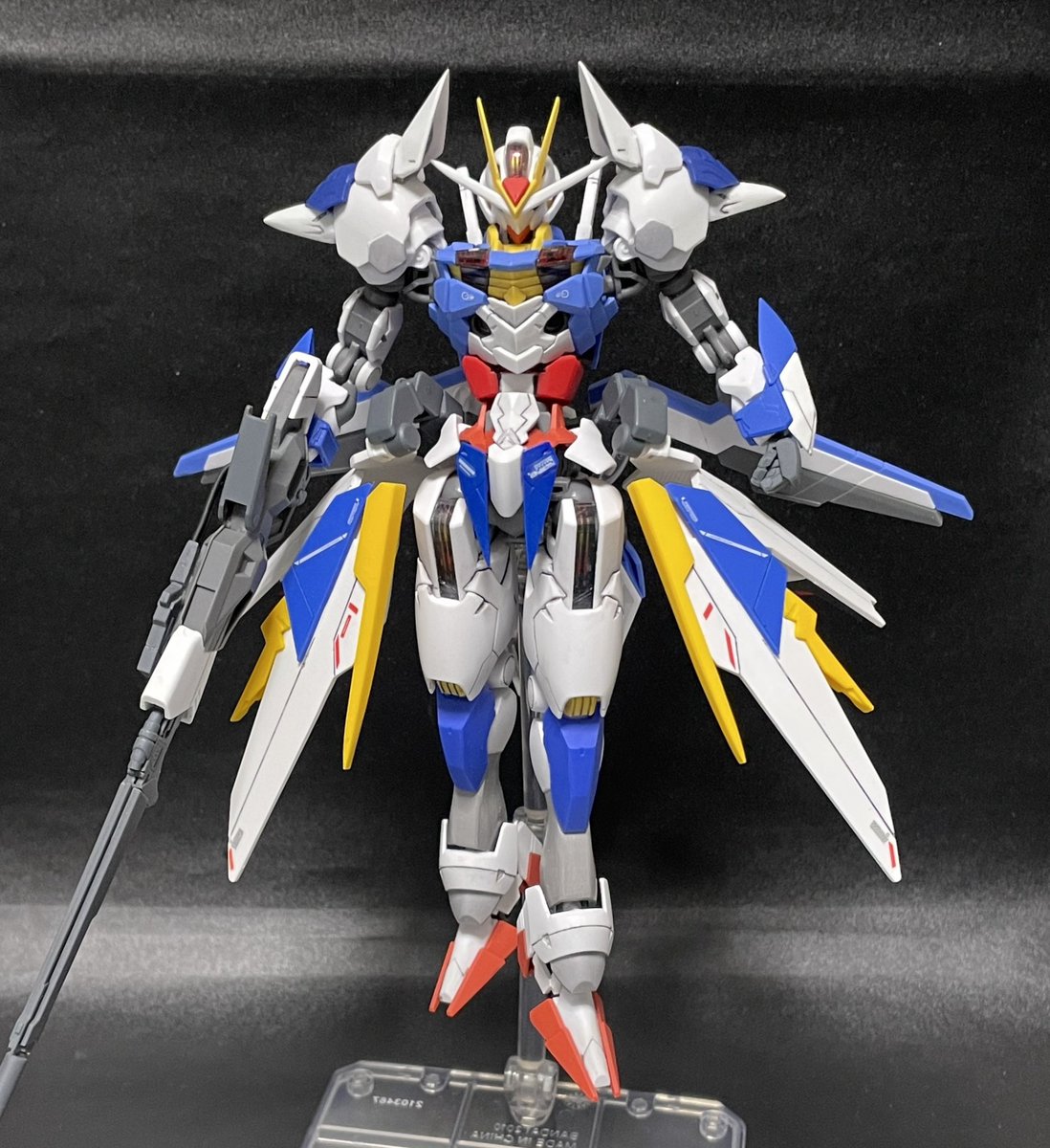 #リンプラに見せてね 「ガンダム・エアリアル・ガンドレス」 女性的なラインを持つエアリアルを防御兵装兼推進器の「ガンドレス」を装備し防御形態スカートモードからドレスを翻した高機動形態プライドモードへ移行する。 という厨二設定・・・ LIVEDVD見ながら作ってたらこうなりました。