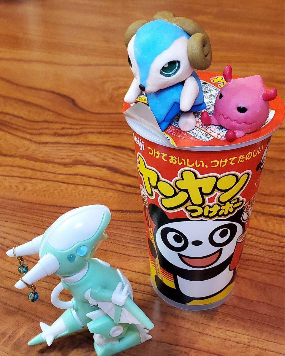 小さい頃によく親にねだって買ってもらってたヤンヤンつけボーを見つけ、懐かしくなって買ってきました。 うちの子達も興味津々。 あっこら、ちょっと待って今開けてあげるかr…… ……ああーーー!! …そういや白い粒々パァン!も昔よくやったっけ(´・ω・`) #ドラネッツ #リヴリーファンアート