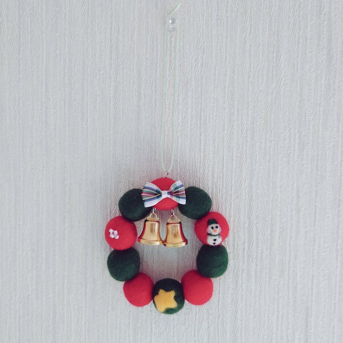 “クリスマスポンポンポン羊毛リース” 🔔ドアノブなど揺れる所へ飾ると ベルの音が鳴る楽しさ 🎄ポンポンポンの羊毛リース 🎅飾ると笑顔になれるアイテム minne.com/items/30025270 販売開始いたしました🌟 #minne #minne_new #羊毛フェルト #クリスマス #リース