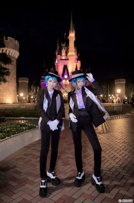 #Dハロ の夜のシンデレラ城はヴィランに似合うよねぇ✨ こんた🦈バースデーのレス、日曜日にします❣️ コメはもちろんDMも全部目通してます。最近出会った子までお祝いしてくれて本当に感激してる❣️ありがとう😭🙏💖 #Dハロ仮装2022 #Dハロ仮装 #twst #リーチ兄弟 #ディズニーカメラマンサービス