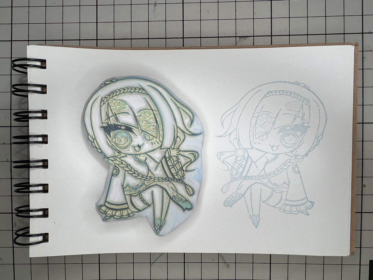 せいま先生(@_seima_ )に描いて頂いた水影凪ルカさん(@Ruka_Mikanagi )の消しゴムはんこ! 今回結構細かい所も出来たのでは...!? #消しゴムはんこ #ルカフェアート twitter.com/misosirumissso…