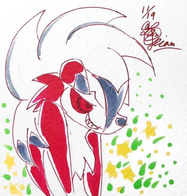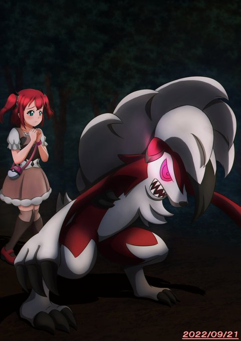 Day 9: (Off-Prompt) Full Moon And I just got a haircut yesterday, too... #inktober #inktober2022 #inktoberday9 #LycanrOctober2022 #lycanroc #transformation #ルガルガン