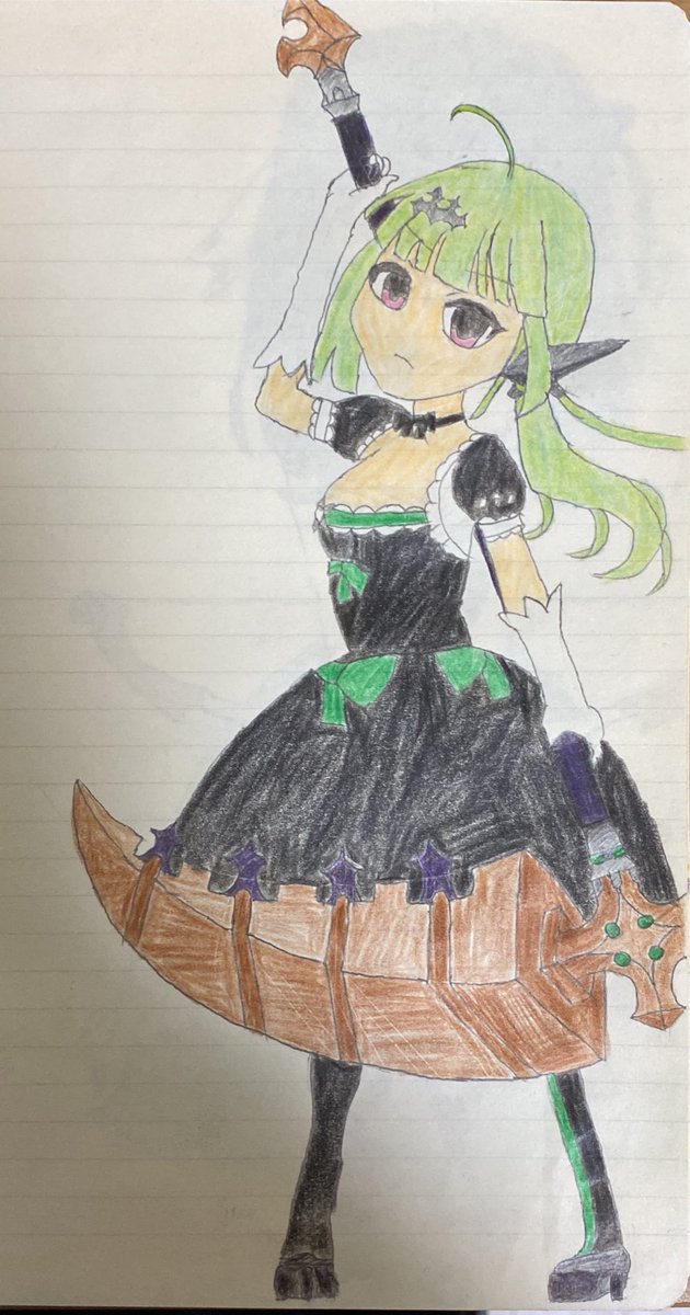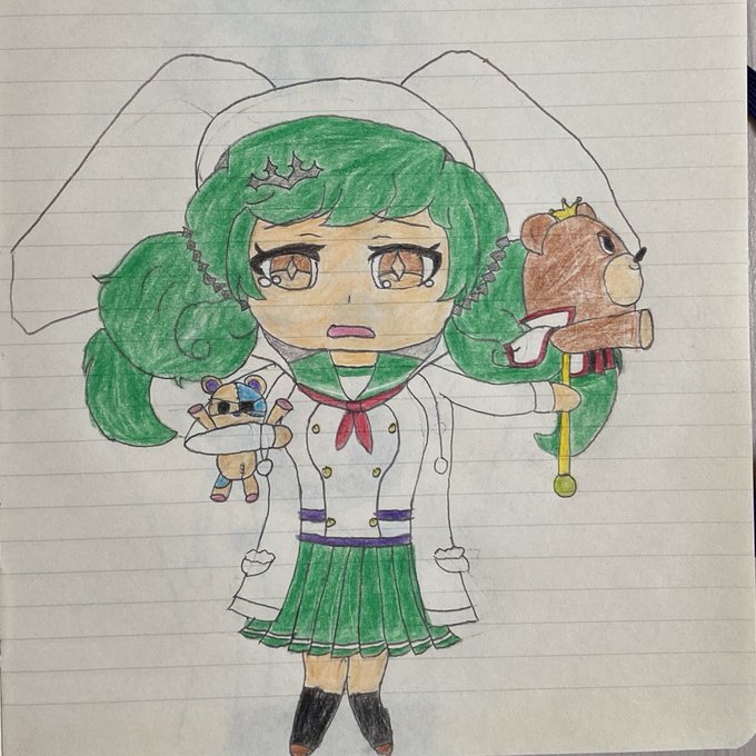 過去絵その2 ルチカお誕生日おめでとう🎊✨ 突然東方(守谷早苗)コスプレをさせられて戸惑うルチカちゃん 体調不良で描けないので これで許して…(¦3[▓▓] #ルチカ生誕祭 #ゴ魔乙ファンアート